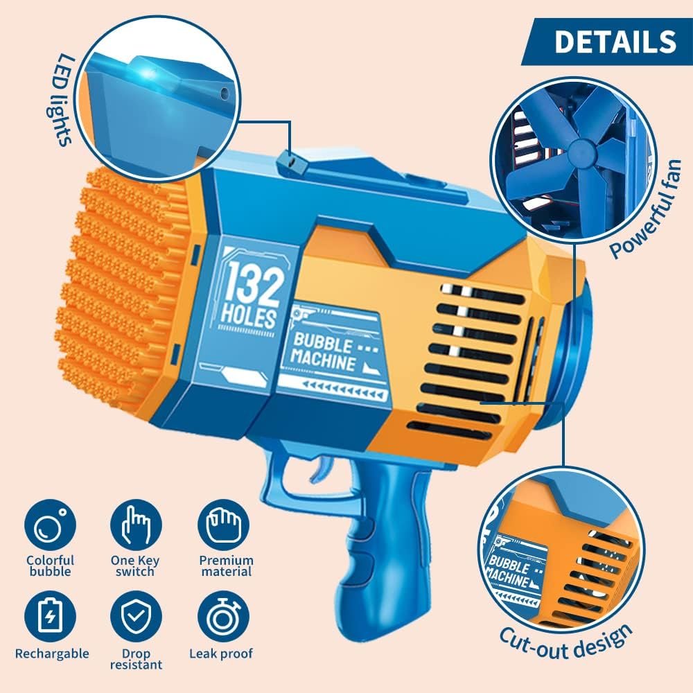 Designed for maximum bubble production, the 132-hole structure delivers a strong and wide bubble flow that fills the air quickly. Its lightweight and portable build makes it easy to carry to parks, gardens, beaches, and party venues.